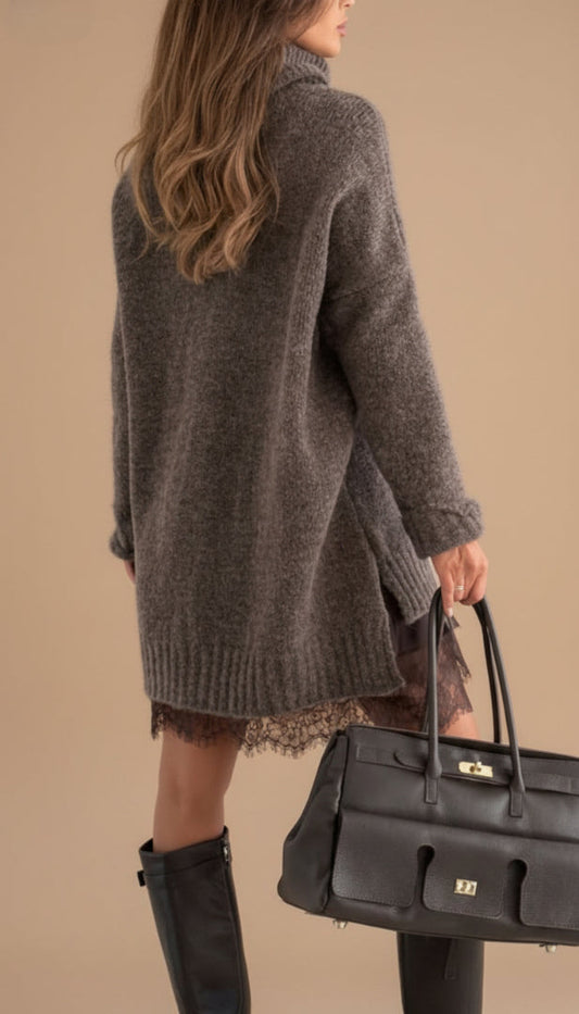 Isabella™ - Vestido Maxi Ajustado en Terciopelo Chocolate con dobladillo Irregular de Encaje