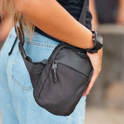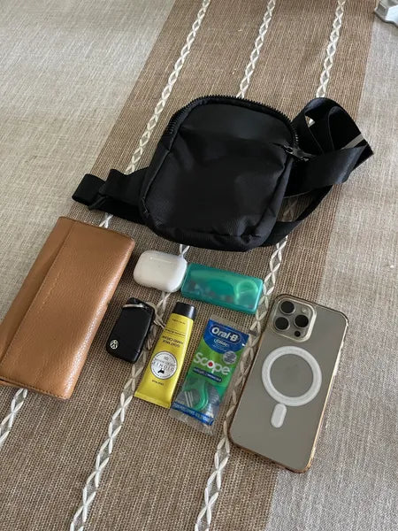 Tiene el tamaño perfecto. Cabe justo lo que necesito: el teléfono, las llaves y algunos otros pequeños objetos esenciales. Todo es fácilmente accesible y me encanta que las cremalleras se puedan asegurar para evitar robos o que se abran accidentalmente.