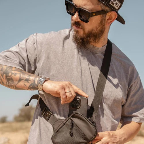 Available in two sizes, it fits everything from your smartphone to a small tablet. Its slim, minimalist design ensures it can be worn discreetly under a jacket, making it the perfect combination of practicality and security.