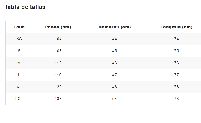 Encontrarás la guía de tallas en cada producto, para que siempre puedas elegir la talla correcta y asegurarte de que te quede perfectamente.