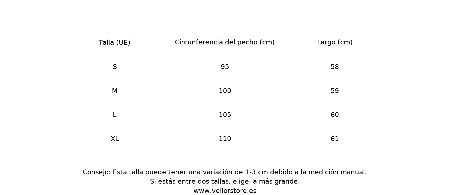 Nuestra ropa se ajusta exactamente según lo indicado en la guía de tallas.