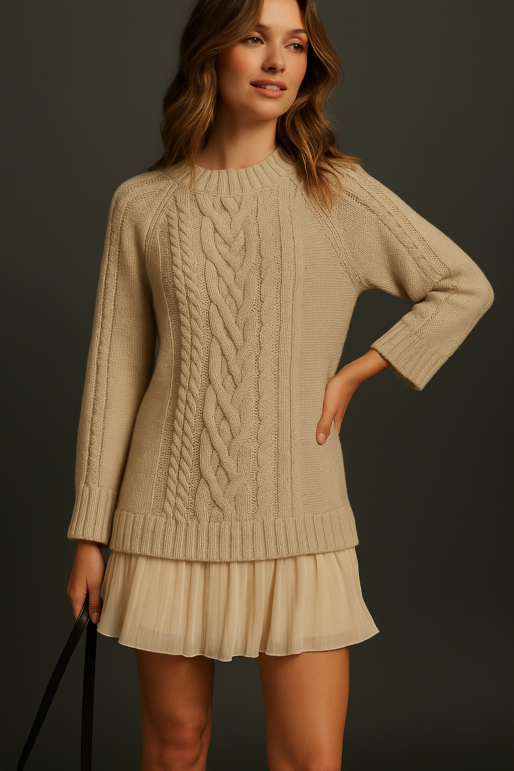 El Vestido Maya combina estilo, comodidad y feminidad en un diseño de punto trenzado perfecto para esta temporada. Ideal para lucir elegante sin renunciar al confort.